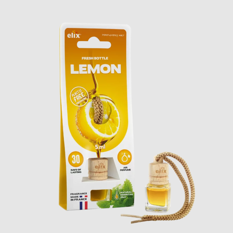 Kolekcia Fresh Bottle od výrobcu Elix predstavuje rad osviežovačov vzduchu a vôní, ktoré sú vyvinuté v súlade s najvyššími kvalitatívnymi štandardmi a s dôrazom na čo najprirodzenejšie zložky, elegantný dizajn, dlhotrvajúci efekt vône a zároveň priaznivú cenu. Osviežovače Fresh Bottle sú odeté do exkluzívnych fľaštičiek a naplnia váš priestor očarujúcimi vôňami, vyrobenými z prírodných esenciálnych olejov. Vďaka postupnému a rovnomernému uvoľňovaniu vône cez drevený uzáver si môžete užívať príjemnú vôňu po dobu 30 dní. Sú vhodné pre použitie v autách i domácnostiach. Bonusom je ekologické balenie bez obsahu plastov, produkt je dodávaný v odolnom papierovom obale.