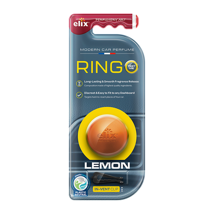 Spríjemnite si cestu autom vďaka pôvabným vôňam RINGO. Vonné polyméry RINGO sú navrhnuté tak, aby sa bez problémov uchytili na ventilačný systém akéhokoľvek vozidla a vyvážene v ňom distribuovali nepretržitú dávku podmanivej vône. Polymérové osviežovače vzduchu ELiX zaisťujú postupné uvoľňovanie vône a jej rovnomerný rozptyl do celého priestoru. Ich príjemnú vôňu si môžete užívať až po dobu 30 dní. Vďaka jednoduchému a univerzálnemu dizajnu sa prispôsobí interiéru ktoréhokoľvek vozidla.